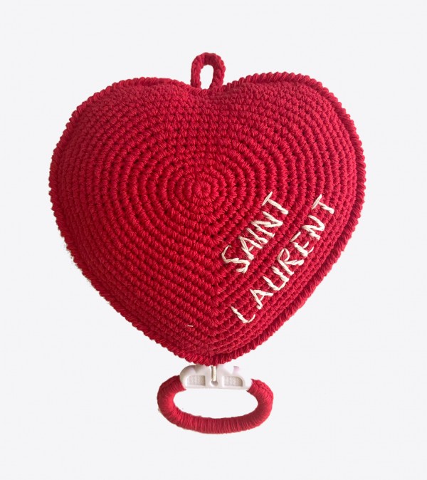 Anne Claire Petit has exclusively customized a black hand-crochet musical heart with Saint Laurent. Using traditional handcraft techniques from natural materials, this limited edition in eco cotton, has a white Saint Laurent logo embroidery. This collaboration brings authenticity, detail, and precision which makes every piece unique. Available exclusively at Saint Laurent Rive Droite www.saintlaurentrivedroite.com